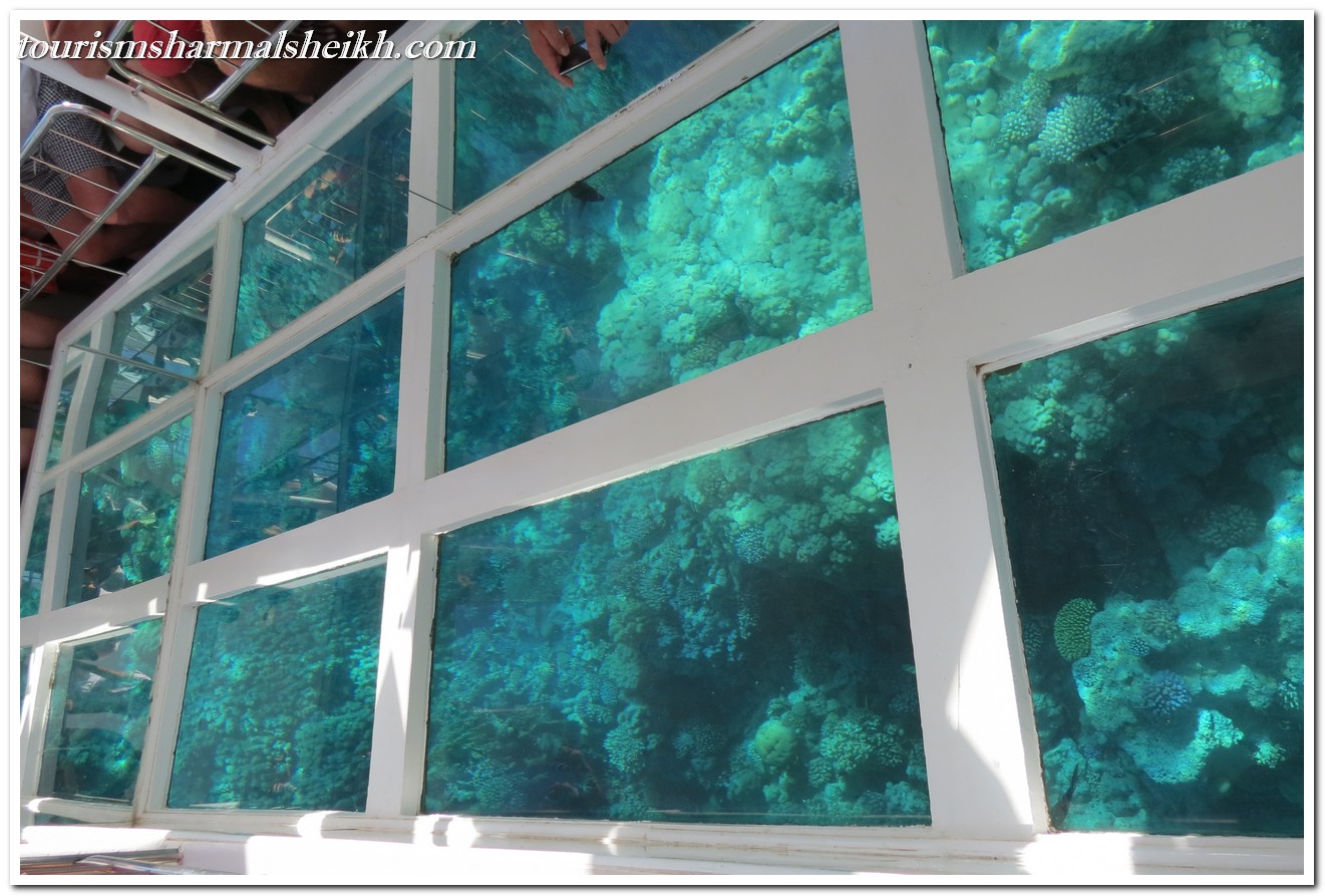 القارب الزجاجي : وهي عبارة عن غواصة تحت البحر .. يكون قاعها من زجاج كي تتمكن من رؤية الأسماك والشعب المرجانية الملونة وهي في القاع