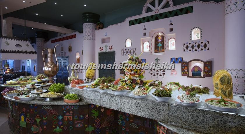 يُقدم مطعم البوفيه المطعم النوبي أطباق الشواء التقليدية والمأكولات العالمية. ويُقدم مطعم تروبيكال بار اند قريل تشكيلة واسعة من الوجبات الخفيفة والمشروبات التي تشمل البيتزا والمشروبات الاستوائية.